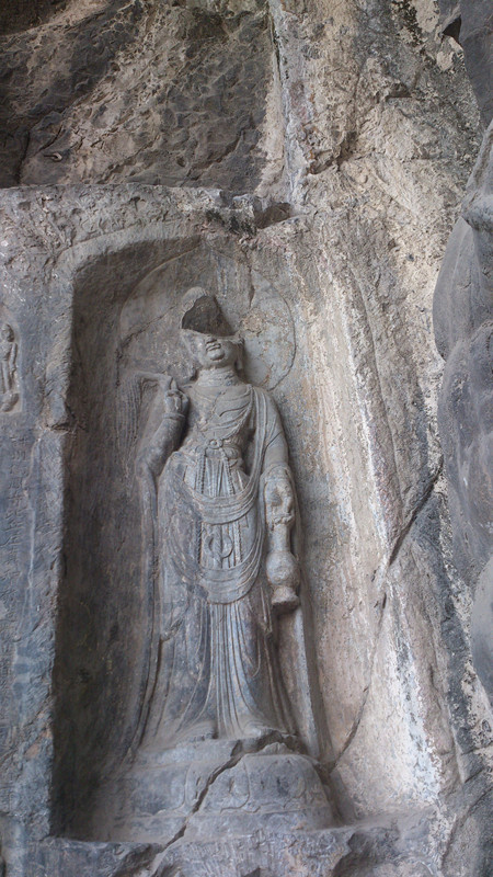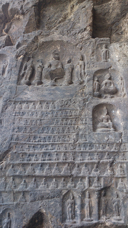 龍門(mén)山色居洛陽(yáng)八大景之冠,唐代大詩(shī)人白居易曾說(shuō):“洛都四郊,山水之勝,龍門(mén)首焉。”這里蒼峰翠嶂矗立,清澈的伊河水潺潺地流淌。走進(jìn)龍門(mén)景區(qū),恍若走進(jìn)彼岸佛國(guó)凈土。秀水青山的美麗幽靜,一下就隔絕了鬧市紅塵的喧囂,讓人如洗肺腑,放下塵緣,了絕俗念。蹬道攀坡,探頭抬眼,窟里龕上,滿山皆佛。小者高不盈寸,秀骨清姿,溫和親切,玲瓏精致,讓朝觀者欣欣然頓生迎佛歸心之愿。大者高達(dá)數(shù)丈,雍容大度,慈祥莊嚴(yán),氣宇非凡,令覲見(jiàn)者惶惶然往往即刻頂禮膜拜。尤其是盧舍那大佛,據(jù)說(shuō)是按當(dāng)時(shí)皇后武則天形象塑造的,佛像面圓體豐,發(fā)紋如波,月眉秀目,含笑凝視,安詳自在,宛若一位富貴;鄣闹心陭D女,令人敬而不懼。