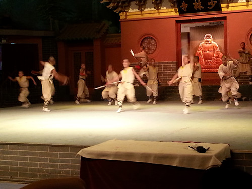 下午,我們驅(qū)車趕往登封,參觀了號(hào)稱“禪宗祖庭”、“天下武功出少林”的嵩山少林寺。雖然在這里只逗留了短短的幾個(gè)小時(shí),但也深深地感受到了禪宗文化。晚上的《禪宗少林·音樂(lè)大典》山地實(shí)景演出,規(guī)模宏大,音畫(huà)一體,上百人的禪武演繹,春夏秋冬的景觀變化,直指心性,讓我們這一行人備受震撼。