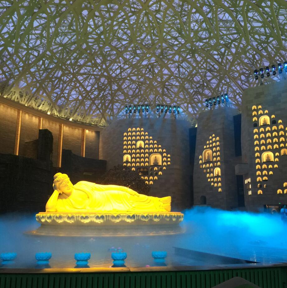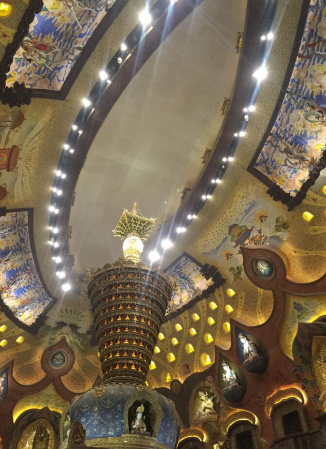 牛首山佛頂宮工程的工程的設(shè)計(jì)和建造匯聚了全國佛學(xué)界和藝術(shù)界的一流專家團(tuán)隊(duì)。整個(gè)佛頂宮總建筑面積近10萬平方米,主體建筑共9層,地下利用礦坑建設(shè)了6層,規(guī)模宏大、建筑奇?zhèn),在?dāng)今佛教文化建筑中少有。建成后的佛頂宮 ,礦口經(jīng)過改造,變?yōu)?ldquo;七寶蓮道”。佛頂宮呈半圓狀,整體造型是以巨型蓮花托起佛頂發(fā)髻的摩尼穹頂,直徑超過200米,非常輝煌壯觀。供奉佛祖頂骨舍利的圣塔,通體為青銅鑄胎鍛造,并運(yùn)用鎏金、水晶、琉璃、寶石等佛教“七寶”鑲嵌,集青銅、鎏金、掐絲琺瑯、雕塑、鏨刻等數(shù)十種傳統(tǒng)工藝,再加激光投射,精美絕倫。